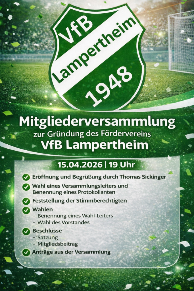 Wir laden euch herzlich zur Mitgliederversammlung zur Gründung unseres Fördervereins ein. Gemeinsam möchten wir wichtige Weichen für die Zukunft des VfB Lampertheim stellen.